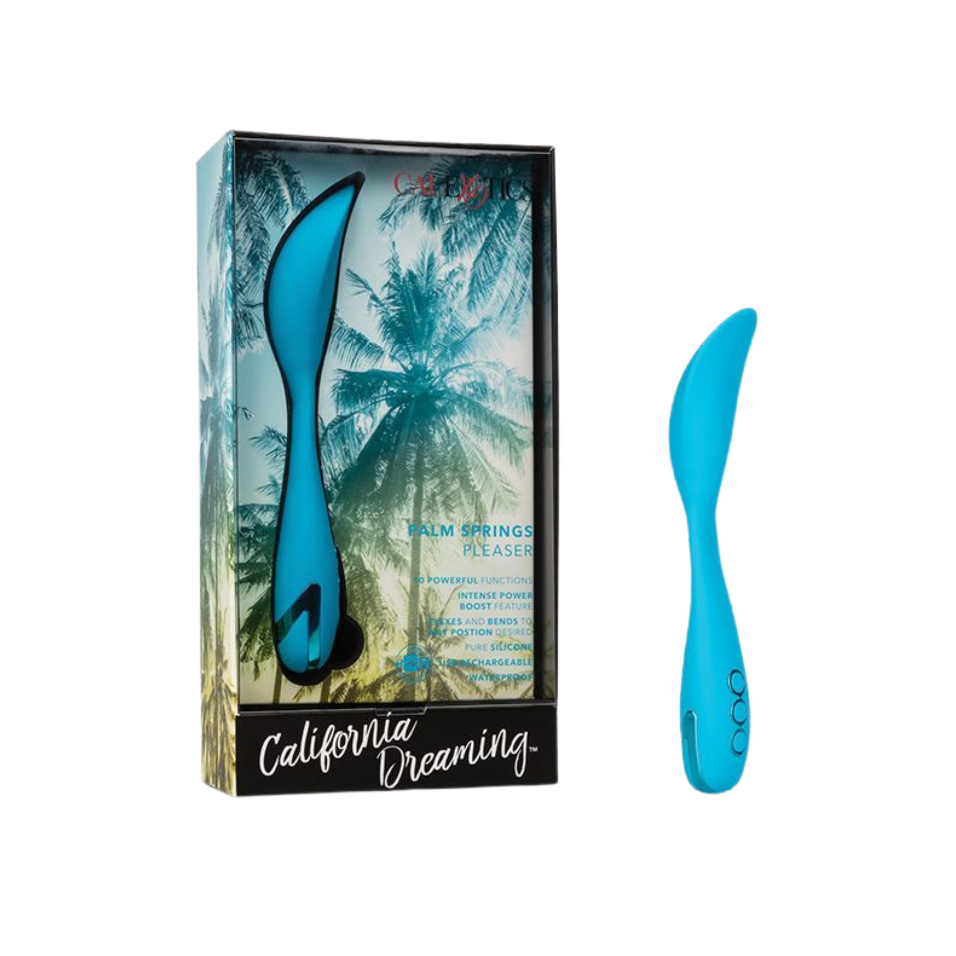 Indulge in waves of pleasure as the California Dreaming™ Palm Springs Pleaser moves you in all the right ways. The intimately contoured vibe is as thrilling as it is versatile with a flexible body, multi-directional positioning and 10 indulgent vibration functions. To push you over the edge, the petite vibe has a knee-shaking Power Boost function for instant maximum vibrations. The 100% play area, waterproof seal and unique flexibility allow you to use this toy as a discreet panty teaser for pleasure on-the-go or a sensual mini vibe for in and out of the water. The easy-touch 2-button control lets you cycle through the knee-shaking settings or use the secure travel lock feature to let your passion takes you. Recharge the premium silicone teaser in 2.5 hours with the provided USB charging cable to enjoy 30 minutes of high-speed stimulation or 75 minutes of low speed vibrations. While the easy-touch button controls the intensity and the vibe gives you the stimulation you want, the pliable body holds any position you desire. The self-sealing charging port and virtually seamless body let you get steamy with this waterproof mini vibe. The hypoallergenic premium silicone is body safe, unscented and phthalate free to keep you most sensitive spots, happy and healthy. To ensure you keep buzzing with pleasure, this mini vibrator has a one-year limited warranty.