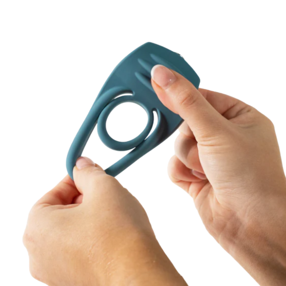 This dual-ringed cock ring provides pressure around both the penis and testicles for a “pleasing squeeze” that enhances both sensation and erections. It also offers 10 modes of powerful vibration when pressed up against the clitoris for stimulation both partners can enjoy.