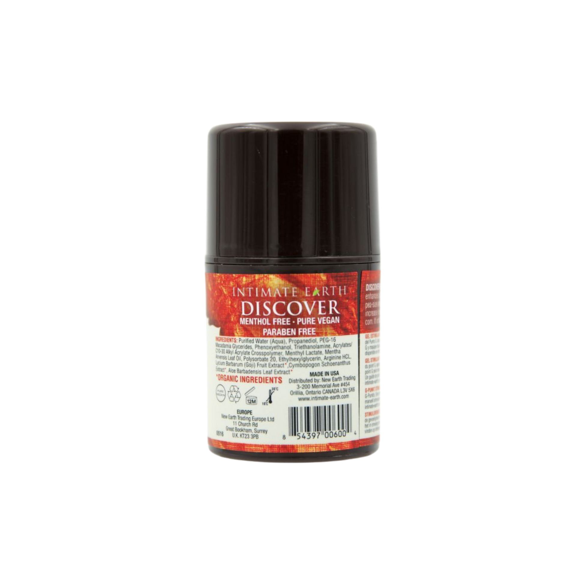 Intimate Earth wants women and men to take intimacy to the highest level. What better way to do that then have a couple experience a G-Spot orgasm together? Our DISCOVER G-Spot Stimulating Gel contains a blend of certified organic extracts, peppermint oil blended with L-Arginine. This unique formula increases the size and the sensitivity of the G-Spot making it easy to find. Included is our Intimate Earth Guide to the G-Spot. Intimate Earth products do NOT contain Menthol.