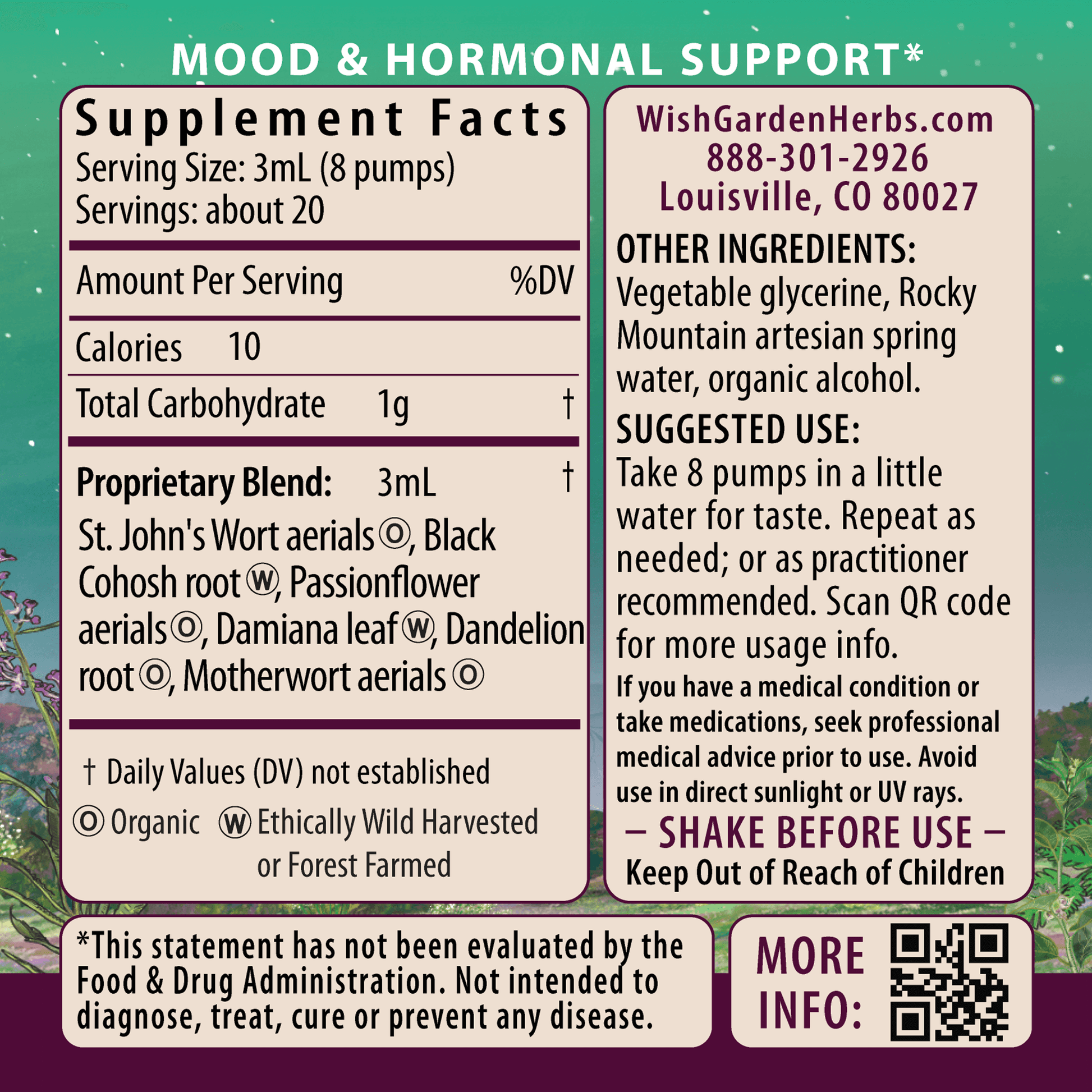 AfterEase: (Cramp bark, Black Haw bark, Yarrow aerials, Motherwort aerials), Postpartum Emotional Baby Blues: (St. John's Wort aerials, Passionflower aerials, Motherwort aerials, Dandelion root, Damiana leaf, Black Cohosh root), Happy Ducts: (Usnea lichen, Elderflower, Bee Propolis, Yarrow aerials, Baptisia root, Boneset aerials, Hops strobiles, Echinacea purpurea root, Red Root, Calendula flower), Milk Rich: (Raspberry leaf, Goat’s Rue aerials, Fenugreek seed, Fennel seed, Nettle leaf, Blessed Thistle aerials).