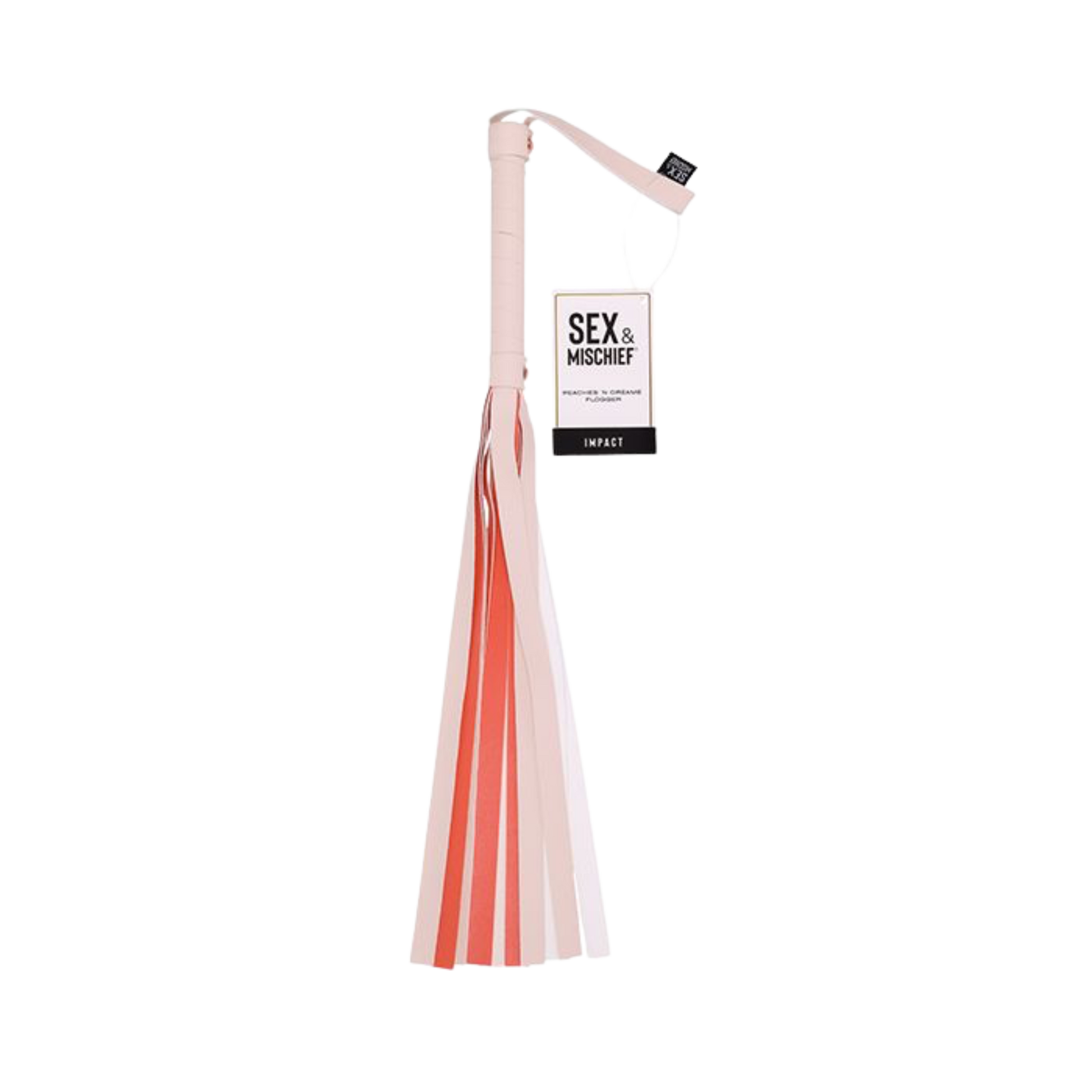 Whip up some excitement with the Peaches ‘n CreaMe Flogger for sadistic pleasure that’s both a little playful and a lot of fun? Experience a flirty fusion of bright and teasing vibes alongside playful passion. Crafted with love and peach-colored faux leather, it's as sweet as it is sassy. The striped handle adds a touch of whimsy, making it a delight to hold and a joy to wield. Add a pop of colorful pleasure with every satisfying strike to your partner and leave them blushing with delight!
